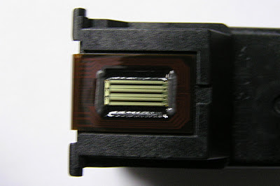 И так что же значит ошибка E28 для устройств начиная с MP140 и P08 начиная с MP240? Если не вдаваться в подробности — это означает перегрев одного из картриджей. Обычно в данных устройствах речь идет о цветном картридже, так как в нем намного чаще выгорают сопла чем в черном. Перед тем как объяснить почему это происходит хочу очень упрощенно рассказать о принципе термоструйной печати устройств Canon. Чернила попадают в сопла картриджа (трубки неразличимые невооруженным глазом). В соплах находятся термоэлементы которые нагревают чернила. При нагреве чернила выстреливают на бумагу. Чернила также выступают в роли охладителя. При отсутствии чернил термоэлементы нагреваются, происходит перегрев сопел и они разрушаются — выгорают. И так если устройство выдало данную ошибку то вам возможно повезло и сопла еще не успели выгореть. В таком случае рекомендуется сразу же заправить оба картриджа и запустить глубокую прочистку устройства, после чего распечатать тест-лист.