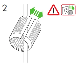 6. Осторожно потяните за решетку фильтра и наденьте ее на кабель. Сдвиньте решетку фильтра к ручке и поверните, пока она не встанет на место.