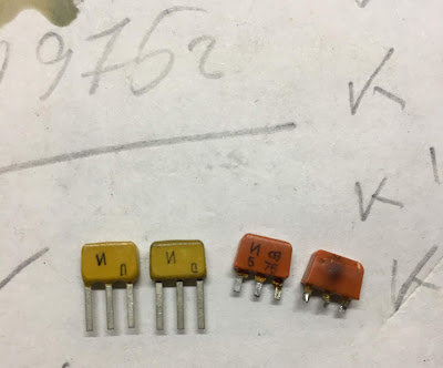 В частотозадающих цепях установлены качественные керамические конденсаторы и кварцевый резонатор в миниатюрном корпусе. Остальные компоненты характерны для советской бытовой техники: конденсаторы К10-7, К50-16 и К50-35; резисторы С1-4; микросхемы в пластиковых корпусах.