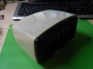 Часы при продаже позиционировались как нерабочие. Повреждений корпуса не было. Стекло сильно потёрто. Сетевой шнур был отрезан.