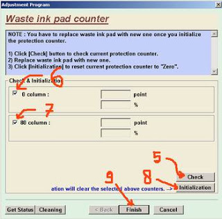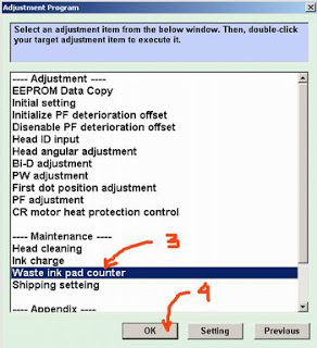 Jika error yang yang terjadi gejalanya seperti pada point 1 dan 3, maka lakukanlah terlebih dahulu pengecekan error lewat menu printer information check pada adjustment program, jika keterangan errornya » Pw sensor error» maka langsung eksekusi dengan tutorial di bawah. Tetapi jika bukan bisa dilihat pada postingan saya lain pada blog ini.