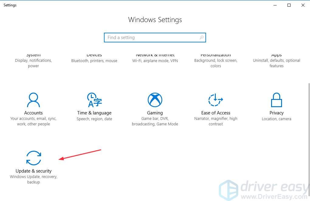 2) Нажмите Обновление и безопасность .