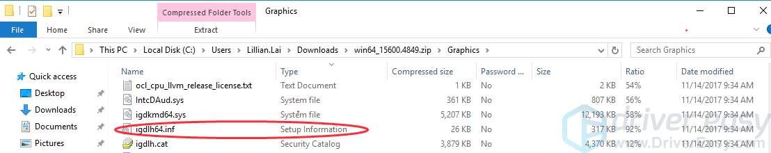 Затем проверьте определенный номер сборки в пакете драйверов (в качестве примера рассмотрим графический драйвер Intel для 64-разрядной версии Windows 10):