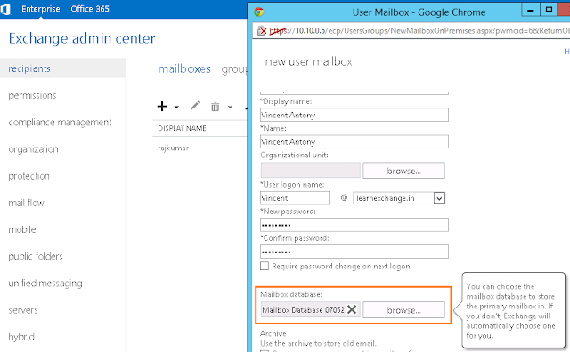 If you are in Exchange Server 2013 and when you create a new Mailbox, you may get an error as Error: Load Balancing failed to find a valid Mailbox Database as shown below