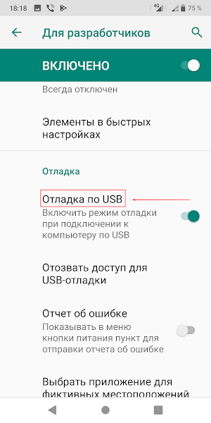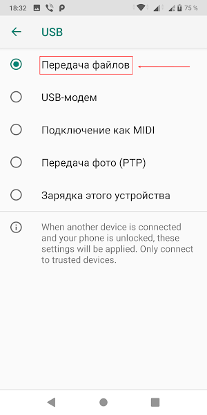 6. В зависимости от Recovery в некоторых случаях необходимо включать принудительно включать на устройстве режим передачи и установки Sideload: