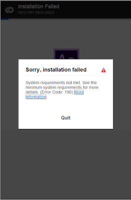 Ketika anda menginstal adobe after Effecs namum ketika dalam penginstalan sudah 30% ada pesan yang menyatakan bahwa erorr (Exit code: 190). mungkin juga ada yang menginstal di photoshop, dreamweaver juga mengalammi hal yang sama ada pesan tersebut berbunyi: