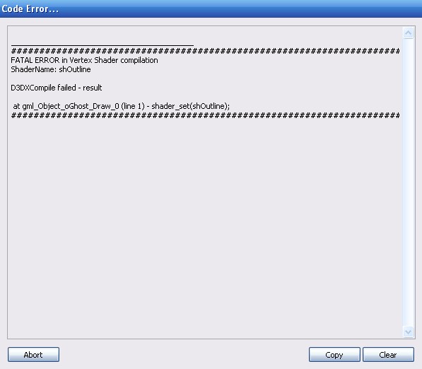 at gml_Object_oGhost_Draw_0 (line 1) — shader_set(shOutline);