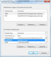 это полный путь нахождения корневой директории Qt (в моем случае, это «C:Qtqt-everywhere-opensource-src-4.8.2«). А вот QMAKESPEC должен содержать имя профиля сборки. Для выбранного компилятора MinGW, в арсенале Qt существуют два профиля: «