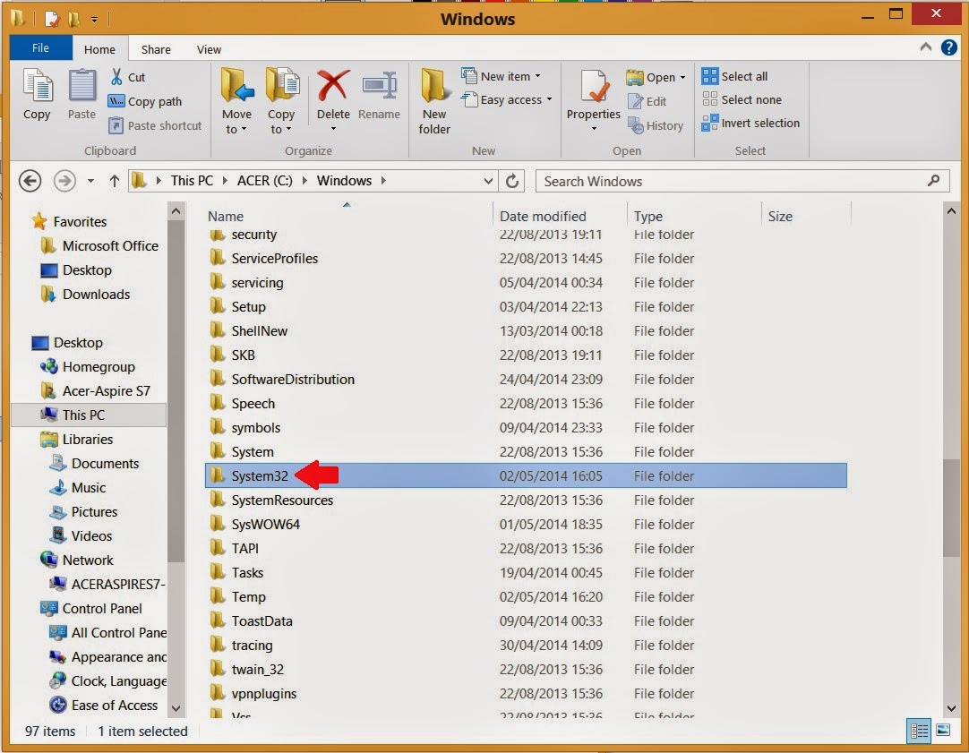STEP 7: Locate ‘System32’ folder from the ‘Windows directory’ and double-click on it.