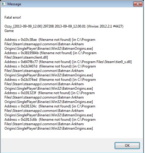 Address = 0xc739fd (filename not found) [in C:Program Files(x86)SteamsteamappscommonBatman Arkham