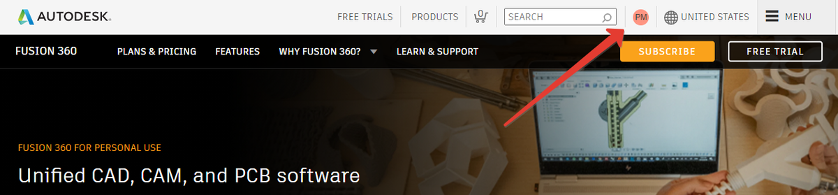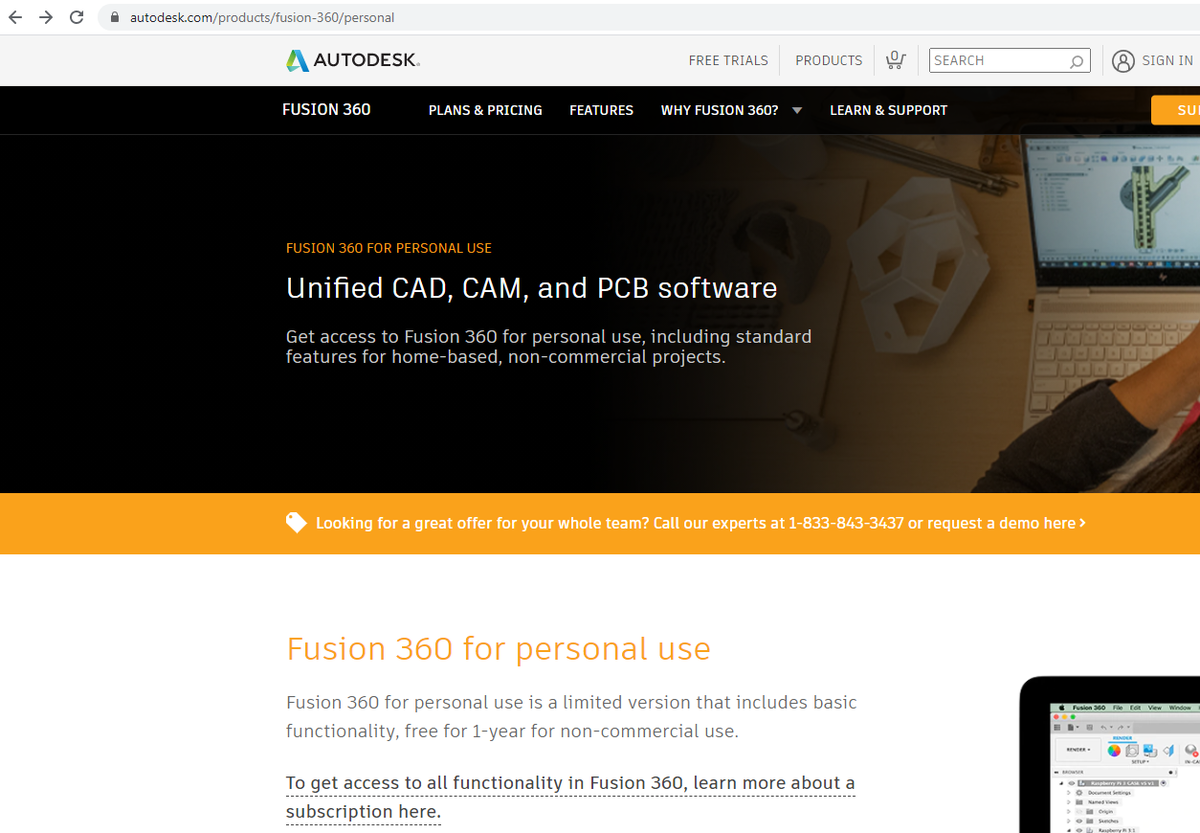 - Перейдите на домашнюю страницу Fusion 360 для личного использования.