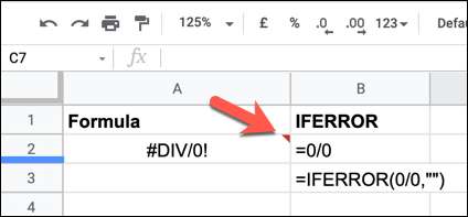 К счастью, вы можете использовать ЕСЛИ ОШИБКА сделать это. Он определяет, не содержит ли ваша формула ошибок, и предупреждает вас об ошибке. Вместо сообщения об ошибке в ваших таблицах Google вы получите альтернативный текст или не получите текст, если воспользуетесь этой функцией. В конце концов, вы можете получить четкую электронную таблицу.