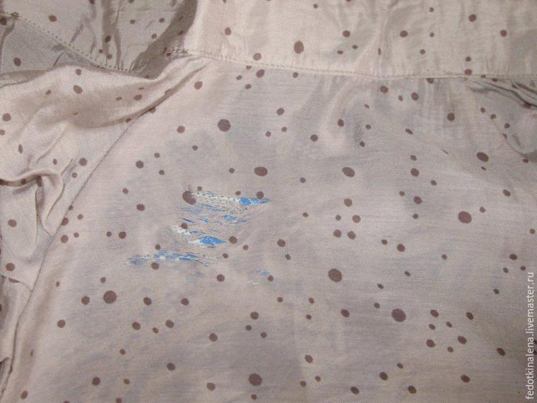 Нужно посмотреть, можно ли спрятать бракованное место в складку или замаскировать его аппликацией, декоративным элементом. Иногда стоит аккуратно зашить разрыв тонкими, подходящими по цвету нитями, и спрятать его от глаз.