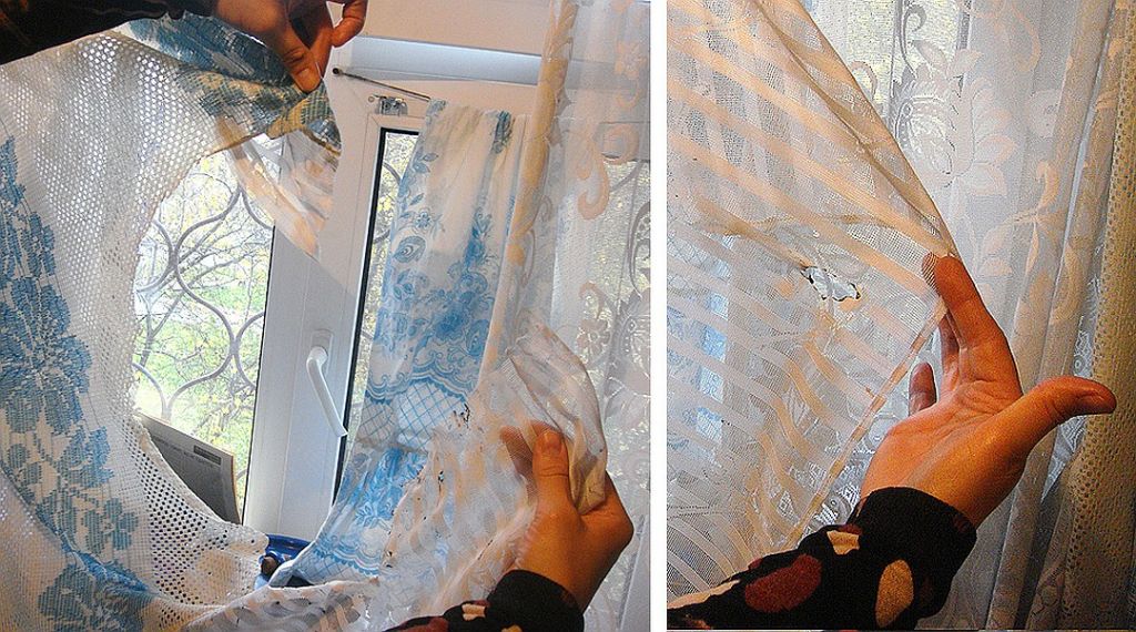 Прожгли утюгом или просто порвали тюль