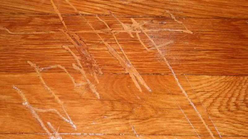 Такие повреждения возникают из-за мельчайших частичек песка, которые приносятся обувью людей и работающих на полу как абразив, а также от когтей домашних животных. Мелкие царапины и потёртости заметны не сразу, но постепенно покрытие становится непрезентабельным.
