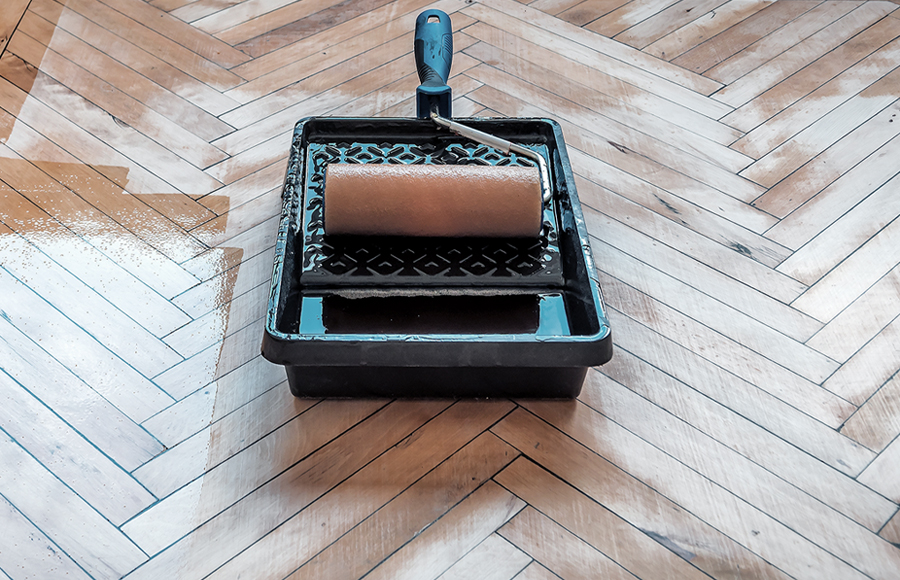 Если нужно изменить цвет пола, то в лак добавляются матирующие добавки. Лак наносят на пол валиком или кистью по направлению древесного рисунка в 2-3 слоя. Каждый слой подлежит тщательному просушиванию. Через 4-5 дней пол готов к эксплуатации.