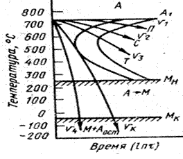 Все легирующие элементы, кроме кобальта, уменьшают критич. скорость закалки, => легированные стали при закалке можно охлаждать с меньшей скоростью.