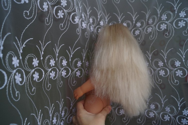 У куклы в голове могут быть пластиковые крепы, банты, банданы, заколки или другие аксессуары, всё это перед началом работы удаляем.