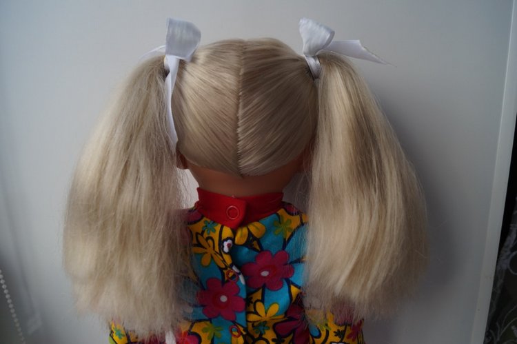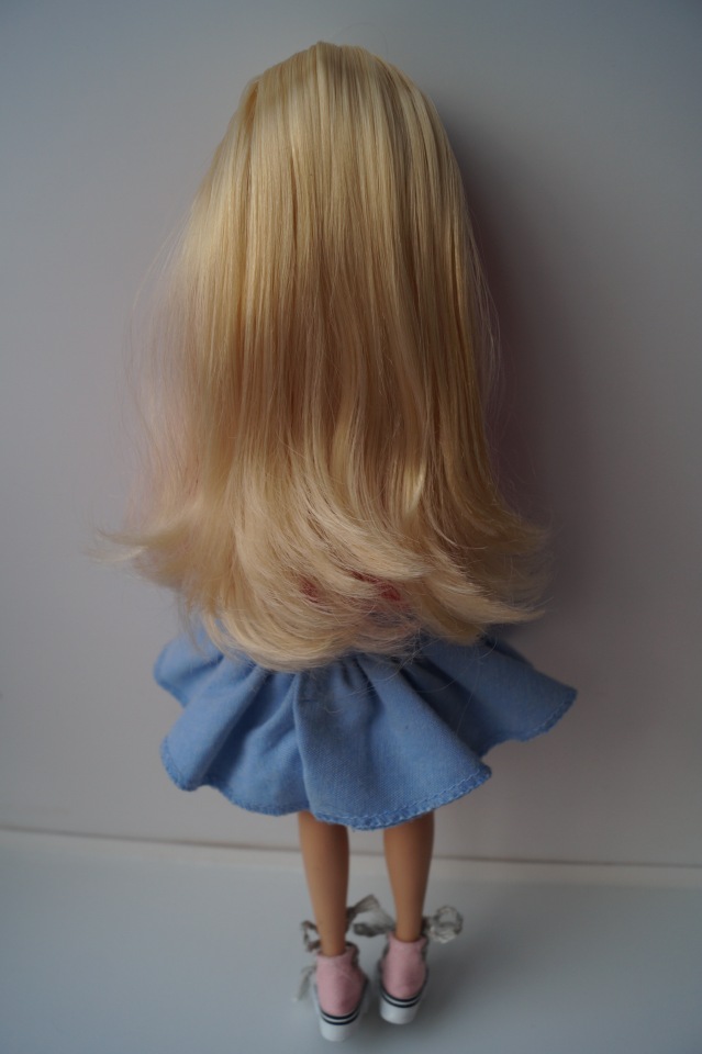 Зрелище грустное. При том, что кукла сама по себе ещё в отличном состоянии, волосы, увы, никакие.