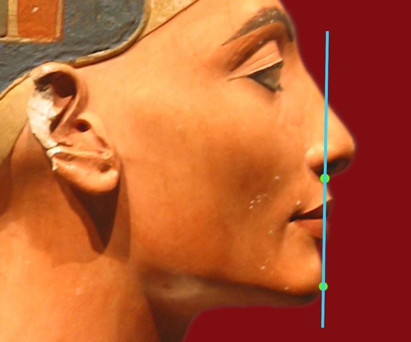 Врачи-ортодонты для анализа профиля обычно используют условную «профильную линию». Это линия, проходит через самую выступающую точку подбородка и верхней/нижней губы. Оценивается отношение этой линии к носу.