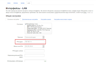 22. на странице «Сеть—Интерфейсы» отредактировать интрефейс LAN