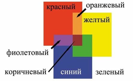 Посмотрите на картинку. Так можно получить одни цвета из других. Интересно, найдется такой человек, который ради создания коричневого цвета, купит синий, красный и желтый?
