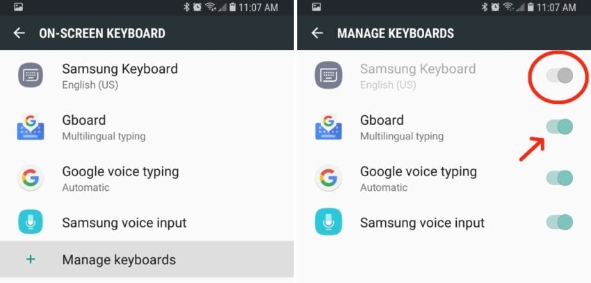 - Now turn on the keyboard you want, and turn off Samsung’s keyboard