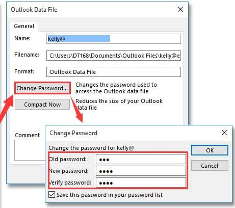 Иногда вы можете установить пароль для доступа к файлу данных Outlook одной учетной записи электронной почты (.pst) в Outlook. Чтобы изменить такой пароль доступа в Outlook, сделайте следующее: