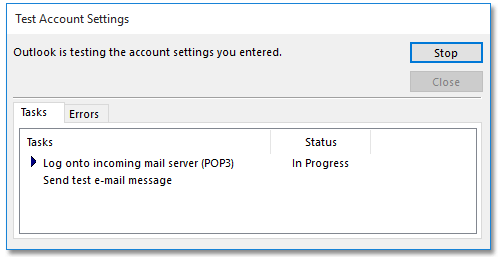 Click «Next» to save your settings and test the password. Outlook will test the account and attempt to login with the password you provided. If everything is successful, you’ll get a «Congratulations!» message.