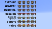 | Пустыня | Джунгли | Равнины | Саванна | Снежные | Болото | Тайга | ||