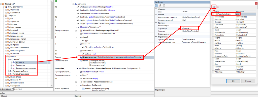 Автомасштабирование этикеток по умолчанию включено в Mobile SMARTS, но при необходимости его можно отключить (например, когда вы хотите распечатать много этикеток на одном альбомном листе). Для этого добавьте переменную «_LblPageAutoResize_» в действие «Печать этикеток» («Печать этикеток» —> «Параметры» —> открыть список и добавить новую переменную кнопкой «+») и присвойте ей значение false. Полученная этикетка не будет растягиваться на весь лист.