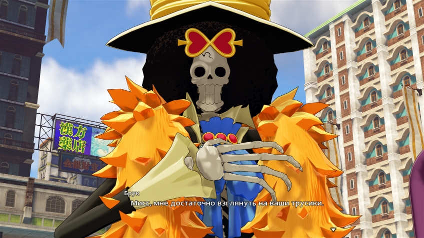 Глобальный сюжет вышел непродолжительным, но запоминающимся. Причина тому — отличные заставки и хорошо прописанные диалоги. Насчёт последнего сомневаться изначально не приходилось, учитывая, что за сценарий отвечал сам Эйитиро Ода, создатель манги One Piece. Кто как не он знает, за что любят его вселенную?