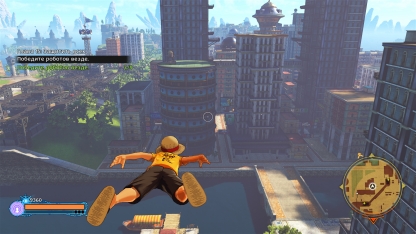 Понятное дело, что Соломенной Шляпе не к лицу заниматься подобными вещами — с такой-то силой! И всё же в открытом мире даже прятки от врагов не кажутся лишними. Да, схватки радуют в первые часы, но быстро надоедают, ведь врагов на карте более чем достаточно. От некоторых болванчиков можно просто сбежать, используя резиновые руки Луффи как трамплин, но в тех же городах этот номер не сработает — снайперы быстро опустят вас с небес на землю, заодно отобрав половину здоровья. Так что стелс и дальние атаки — идеальный выход из надоевшего положения.