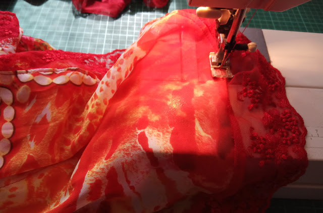 Нет, не обрезала (честно- поленилась), а заложила складки и прошила их, как делали это наши пра-прабушки еще в 19 веке.