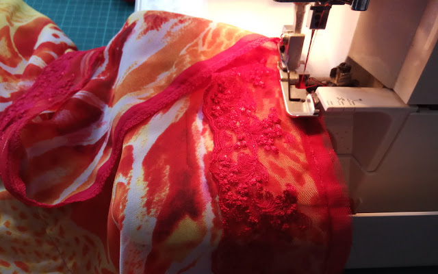 - Отрезав лишнее, на оверлоке обметывают срезаный край вещи.
