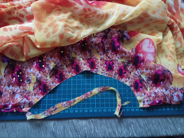 Отрезаем верхнюю часть сарафана и пришиваем подол к майке.