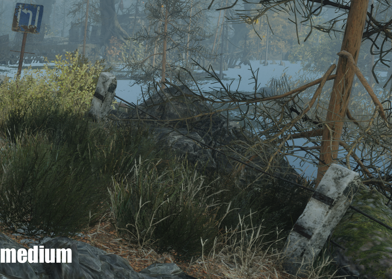 На «средних» настройках графики наблюдается резкий «рост» травы, еще чуть-чуть улучшается освещение. В принципе, это справедливо и для дальнейшего повышения настроек графики.