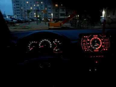 | 1. | Михаил Александрович, 41 год (drive2.ru): у меня одна из первых моделей, освещение приборки в яркую погоду недостаточное, но я уже адаптировался. Перепрошивать не стал, немного затемнил боковые стекла, считываемость улучшилась. |