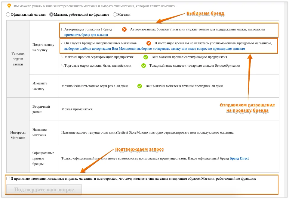 2. Отправить письмо, которое подтверждает, что ваша организация получила разрешение на продажу бренда.