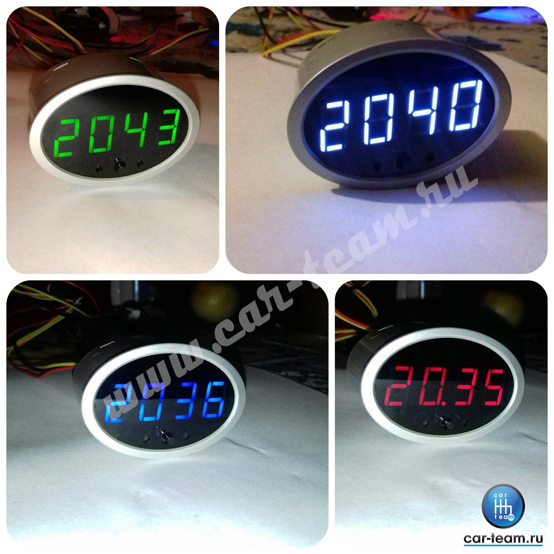 На вольтметре все не заканчивается! В электронные часы, которые рассматривались выше, можно добавить вольтметр и градусник, который будет показывать температуру внутри салона. Цвет дисплея у этих моделей можно выбрать — благо выбор есть. Устройство с подсветкой отлично смотрится и вечером, когда наступают сумерки, добавляя уют салону Приоры.