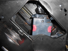 Удерживает его фиксатор на каретке.Скорее всего каретка некорректно встала в парковку.