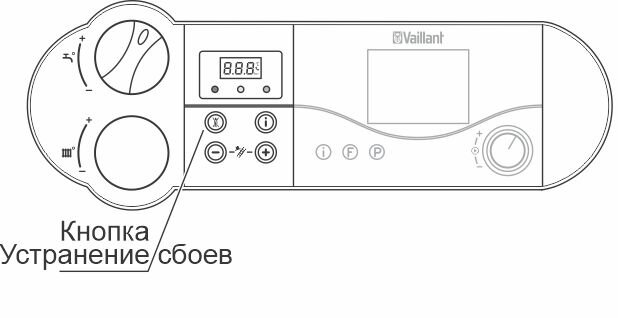 - Неполадки в электросети котла: перезагружаем котел — на панели газовых котлов Vaillant имеется соответствующая кнопка (перечеркнутый символ язычка пламени или обозначение RESET).