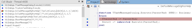 вызов MessageDlg приводит к отображению окна